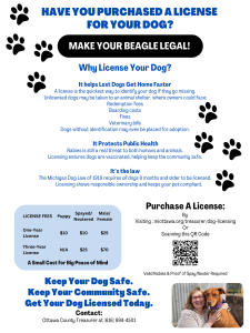 Ottawa County will now issue dog license renewals based on the MONTH that your dog’s rabies vaccination expires. You will have the option of purchasing a 1 year or a 3 year license.